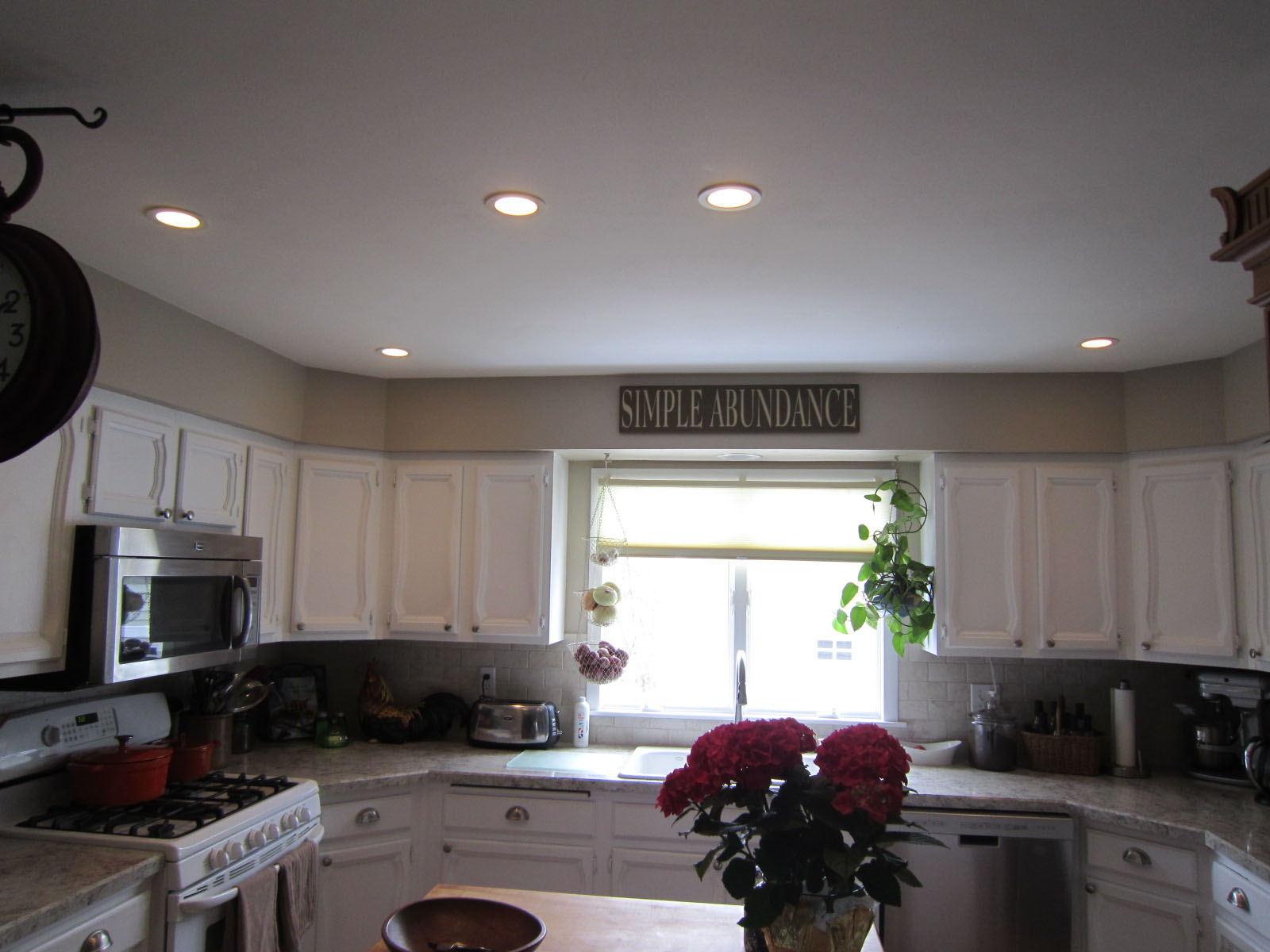 Speaking of the kitchen.....no more hole in the ceiling and some new pot lights! It is soooo nice.